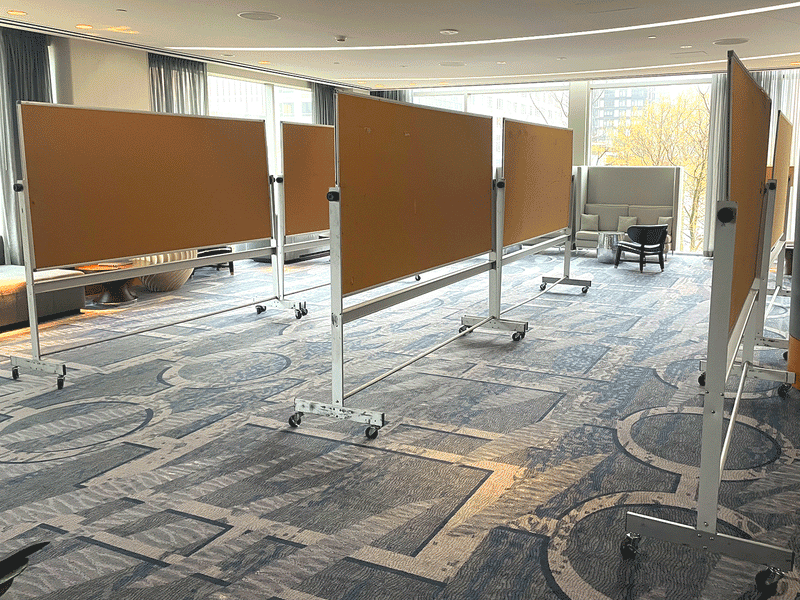 For events requiring more interactive displays, our rental cork bulletin boards are an excellent choice. These boards are perfect for pinning up notices, schedules, or interactive elements such as question-and-answer sessions, community feedback, or brainstorming notes.