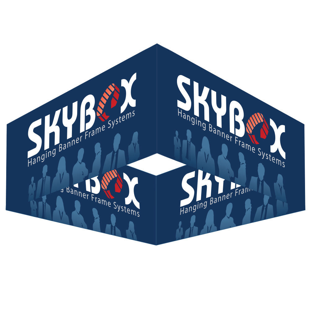 The Skybox Fabric Hanging Banner is a must have if you want to get noticed. These extra large hanging banners are produced from high quality fabric and enables your booth to be seen from practically anywhere at your trade show. Available in circle, square, and triangle configurations as well as numerous sizes, there is a Skybox Hanging Banner that would suit almost any situation.