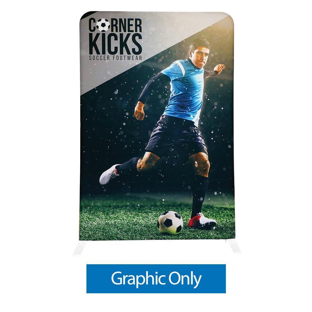 With a sleek and thinner with a smaller tube diameter along with curved corners, this new 5 ft. EZ Stand Straight display makes for a great alternative to our premium backwall display. Quickly assemble in just 5 minutes. Slide the tubes together and lock them in place with a push button snap to make frame. Then simply pull the pillowcase graphic over the frame and zip it shut. The bottom zipper, hidden from view, tightens the stretch fabric beautifully displaying your graphic from edge to edge. Disassembled, the lightweight frame and graphic fit inside an option compact silver bag.