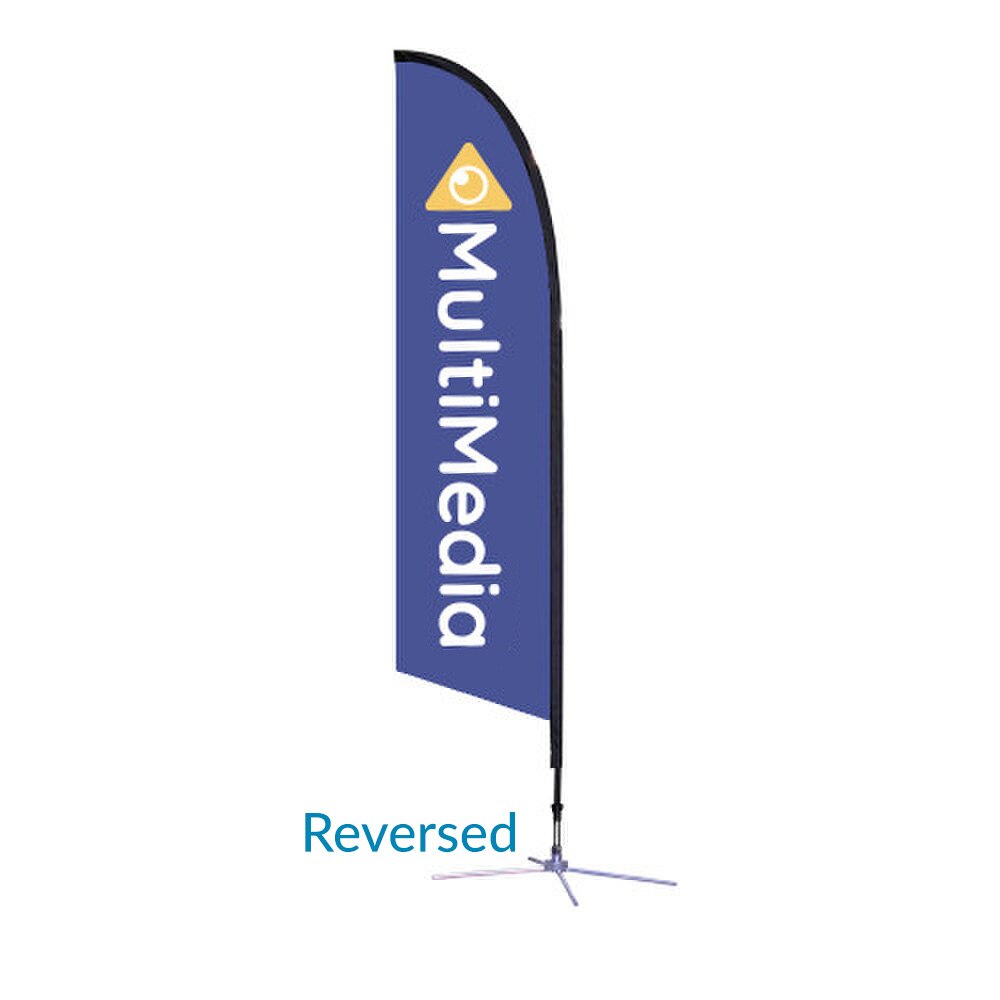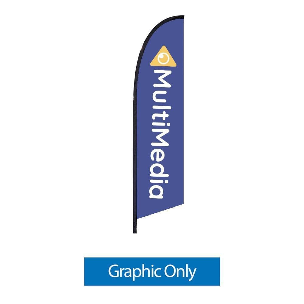Perfect for quantity orders, the new flagpole hardware redesign for our Best Seller Falcon Flag® is the economical choice. Plus, with upgraded hardware, its new pole connections give more height options. Now in more sizes, you can find your favorite Falcon® flags in these heights: XS (7'), SM (8.25'), MD (10.5'), LG (14'), XL (17').Falcon Flag® is intended for display outdoors. Insert the spike base into grass or use the X-base to stand on concrete. We custom print your graphic artwork on polyester mesh by the process of dye sublimation. Our inks heavily saturate the material to create a "bleed-through" effect for our single-sided prints, and double-sided prints are finished with a silver-gray blocker that lays between. Black flag trim is sewn on the edge of the graphic (pole-side), leaving a pocket for pole insertion. A set of grommets are installed on the bottom of the trim in which the short bungee cord (included) can loop through and snugly attach the graphic to the base.
