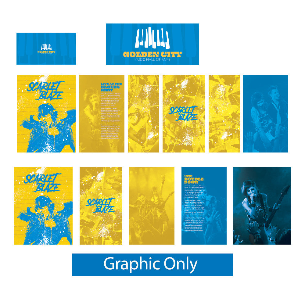 - Single sided graphic display. Back of the display shows the black backing of the fabric.