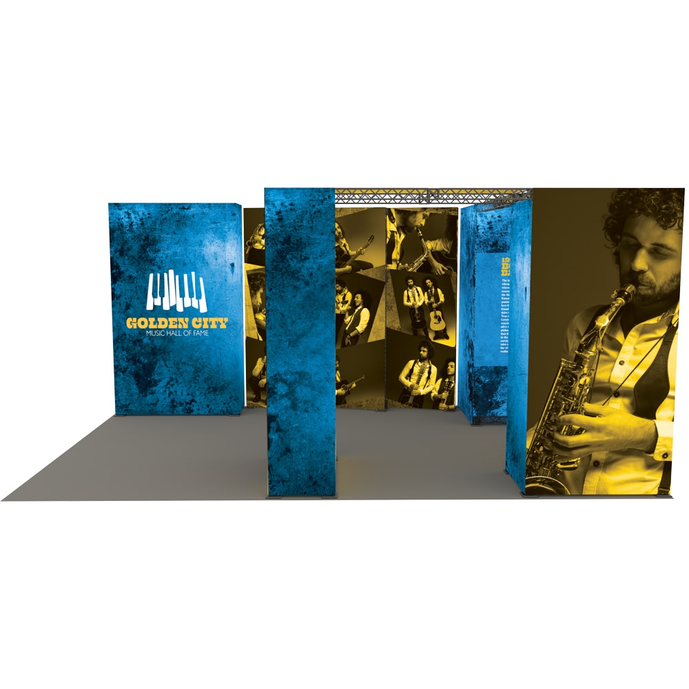 - Designed to fit in a 30ft x 20ft booth space. Please check your trade show guidelines to make sure this configuration conforms to the show regulations.
