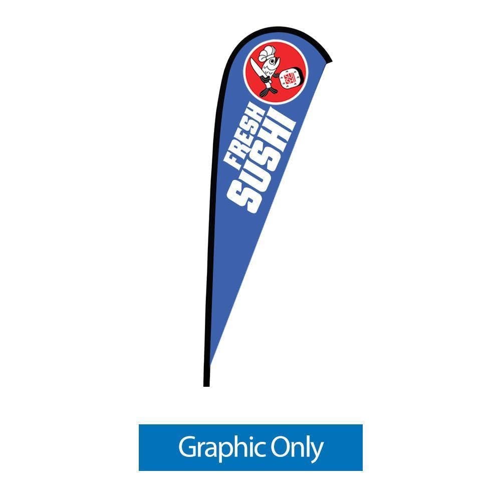 The Sunbird Flag, our newest teardrop shape flag that is produced using the same exact materials as our Best Seller Falcon Flag. Perfect for quantity orders, this new flagpole hardware is the economical choice. Plus,its pole connections give height options. Sunbird Flag comes in these four heights: SM (7.5'), MD (9'), LG (12'), XL (15'). Sunbird Flag is intended for display outdoors. Insert the spike base into grass or use the X-base to stand on concrete. We custom print your graphic artwork on polyester mesh by the process of dye sublimation. Our inks heavily saturate the material to create a "bleed-through" effect for our single-sided prints, and double-sided prints are finished with a silver-gray blocker that lays between. Black flag trim is sewn on the edge of the graphic (pole-side), leaving a pocket for pole insertion. A set of grommets are installed on the bottom of the trim in which the short bungee cord (included) can loop through and snugly attach the graphic to the base.